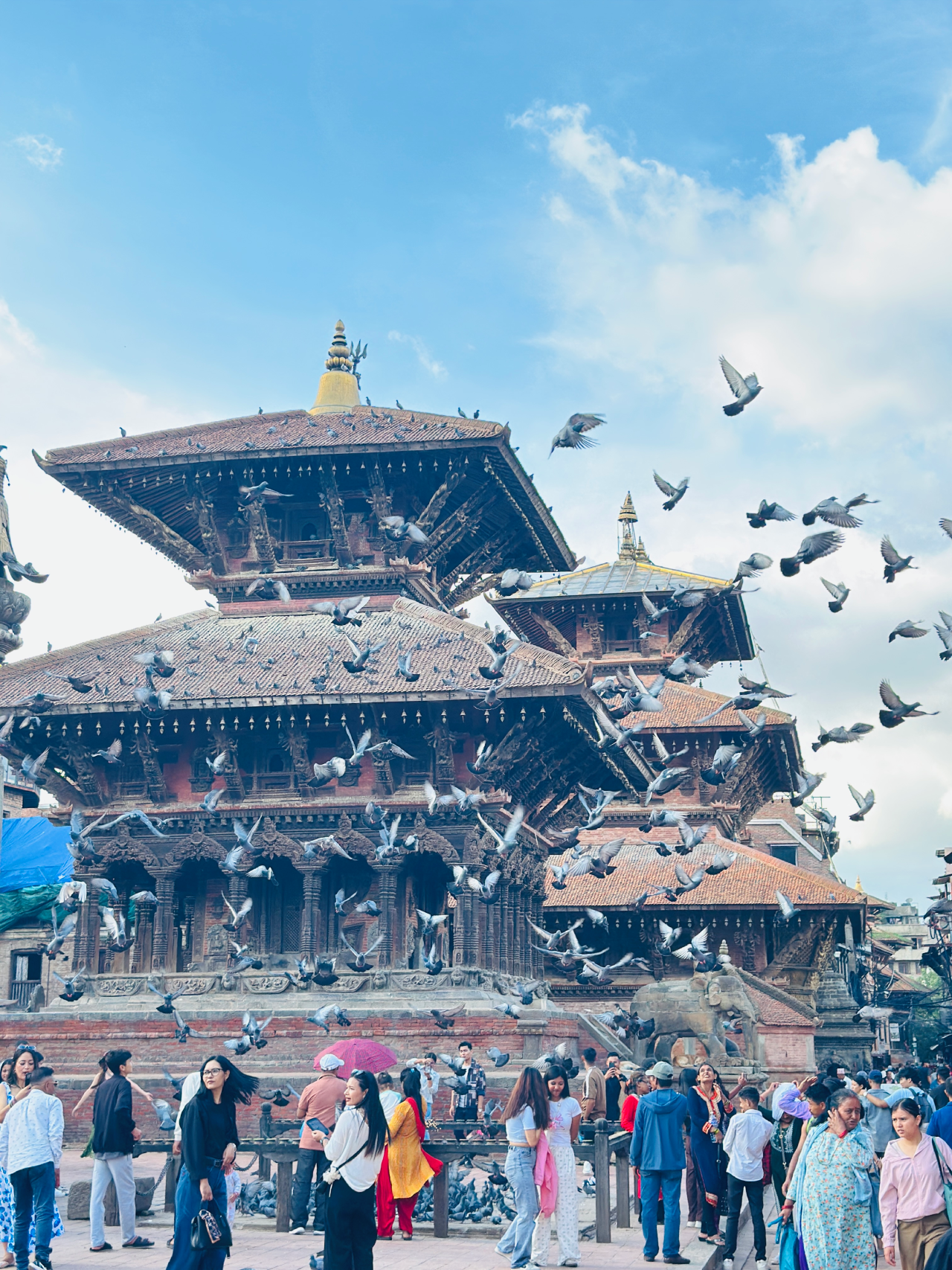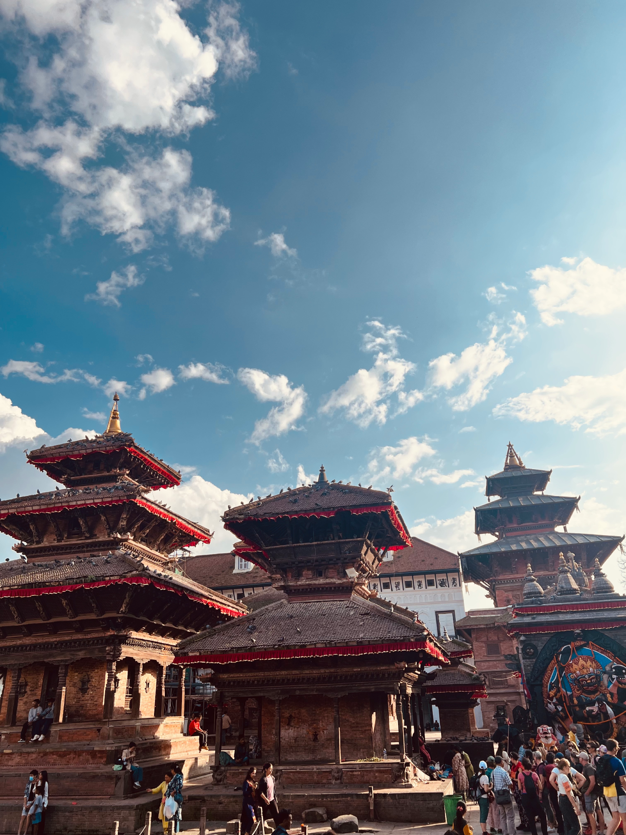Step into the square and you’re immediately surrounded by an enchanting world of intricate wooden carvings, towering pagoda-style temples, sacred courtyards, and centuries-old shrines. Each structure seems to carry its own legend — carved by artisans whose skills have been passed down through generations.