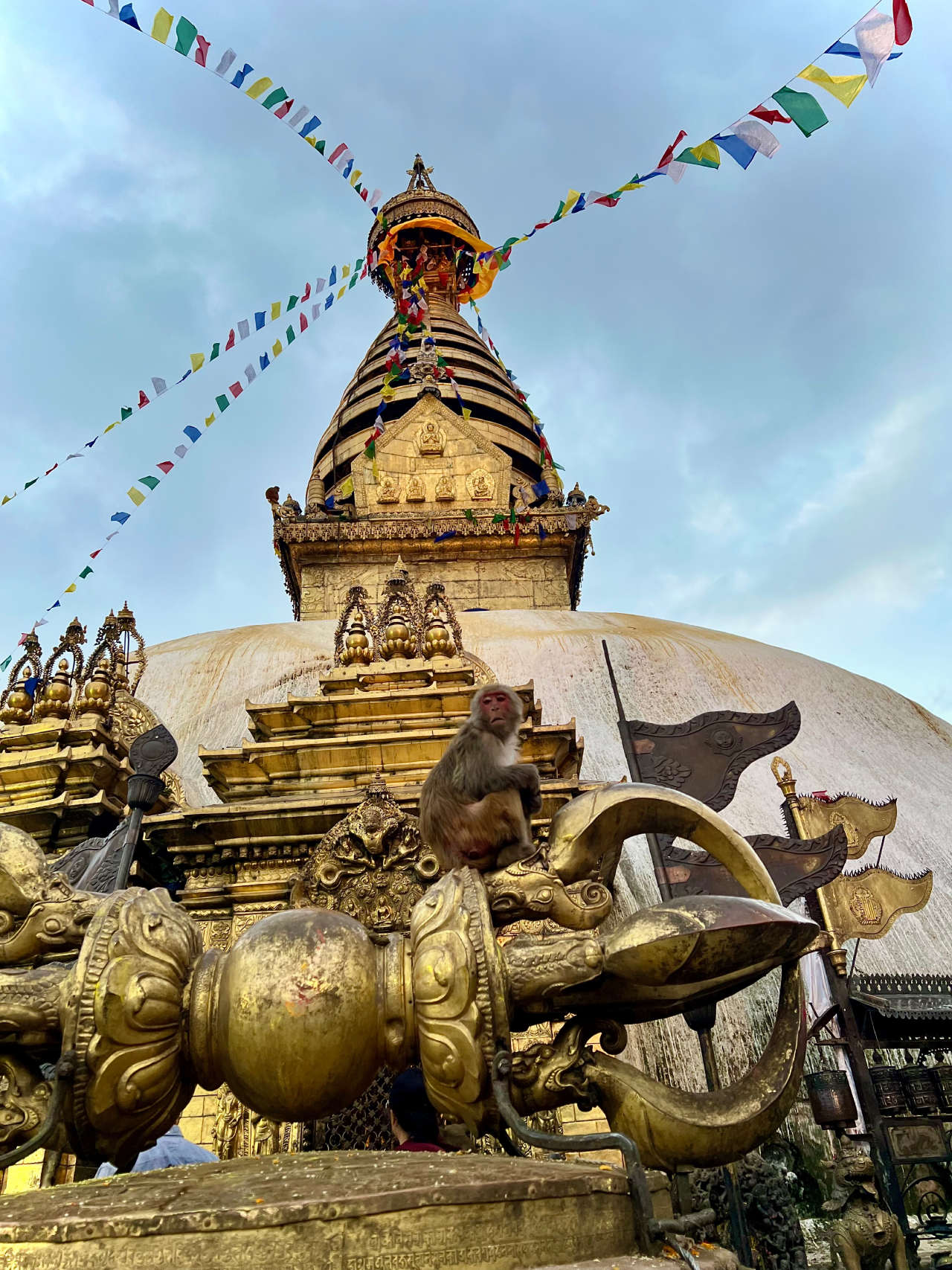 The temple wouldn’t be the same without its famous residents — the monkeys! They jump around the stairs, strike funny poses, and sometimes act a little too confident with visitors. Their playful nature adds life to the sacred atmosphere, making the Monkey Temple even more unique and memorable.